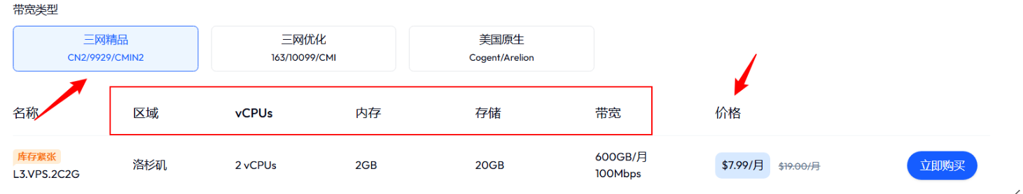 先看线路,适合自己的就好(国际原生线路、优化线路、精品线路)
